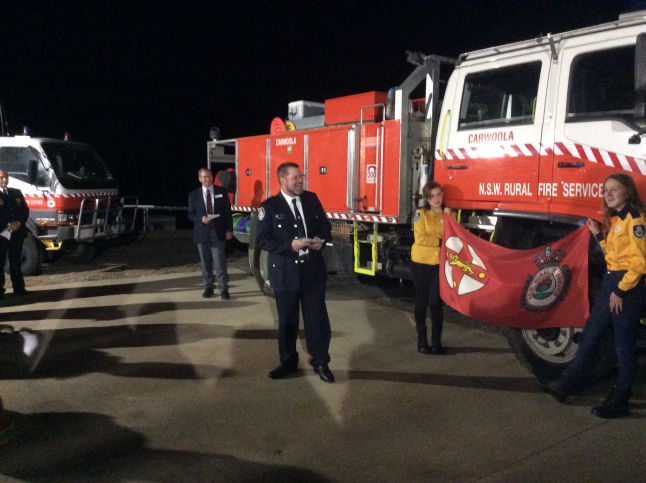 (L-R) Local member, the Hon. Dr Mike Kelly, MP, QPRC Mayor Tim Overall, Carwoola President Gary Anderson, Carwoola Captain David Hanzl, Assistant Commissioner Stuart Midgley, AFSM